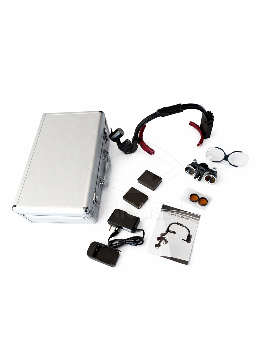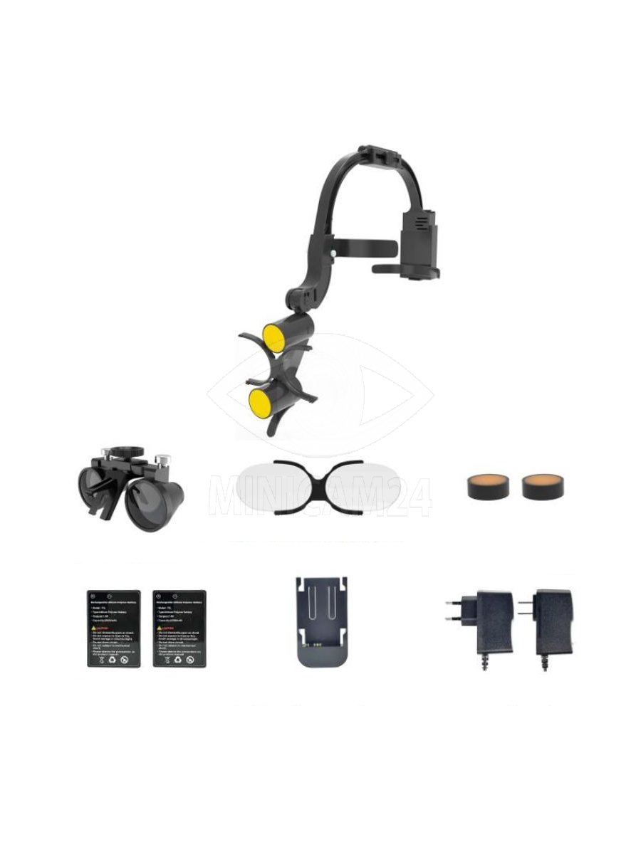 Налобный осветитель с бинокулярами 3.5х и линзой, 2 АКБ, черный