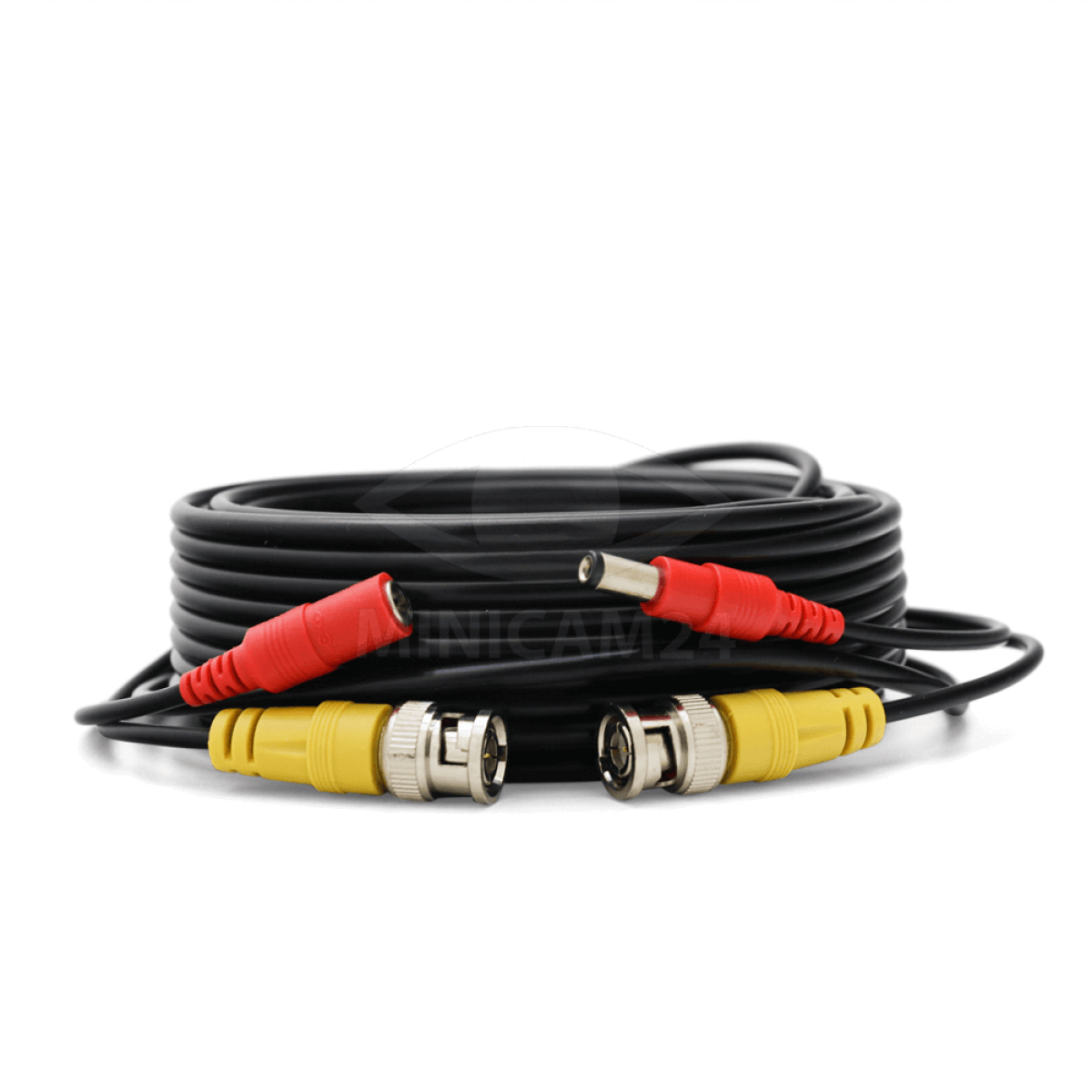 Готовый к использованию кабель длиной 15 метров. Кабель оконечен разъемами BNC для видеосигнала и DC 5.5 для подключения питания 12 вольт постоянного тока.